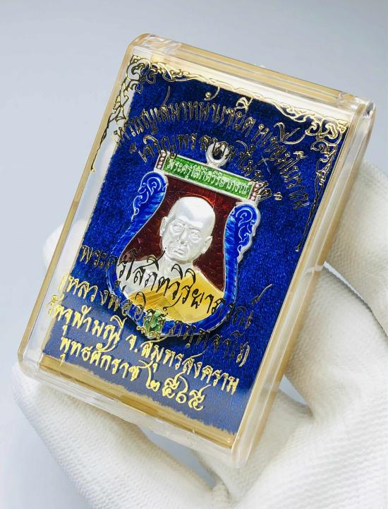ออกวัด 2,500 เหรียญเสมาหน้าแซยิด หูเชื่อมโบราณ เจริญพร ลาภมาไม่ขาด หลวงพ่ออิฏฐ์ วัดจุฬามณี เนื้อเงินลงยาแดง ลงยาจีวร