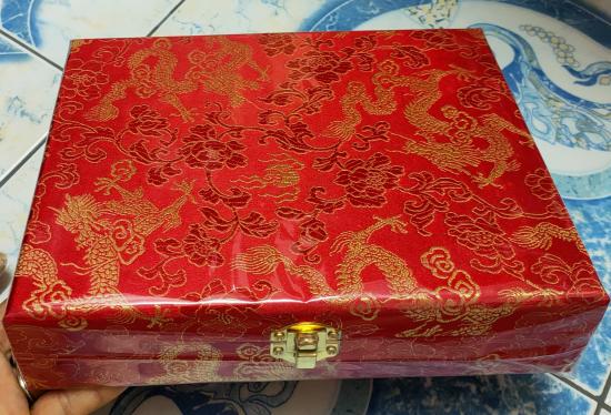 ชื่อพระเครื่อง กล่องใส่เครื่องประดับ หุ้มผ้าไหมสีแดง