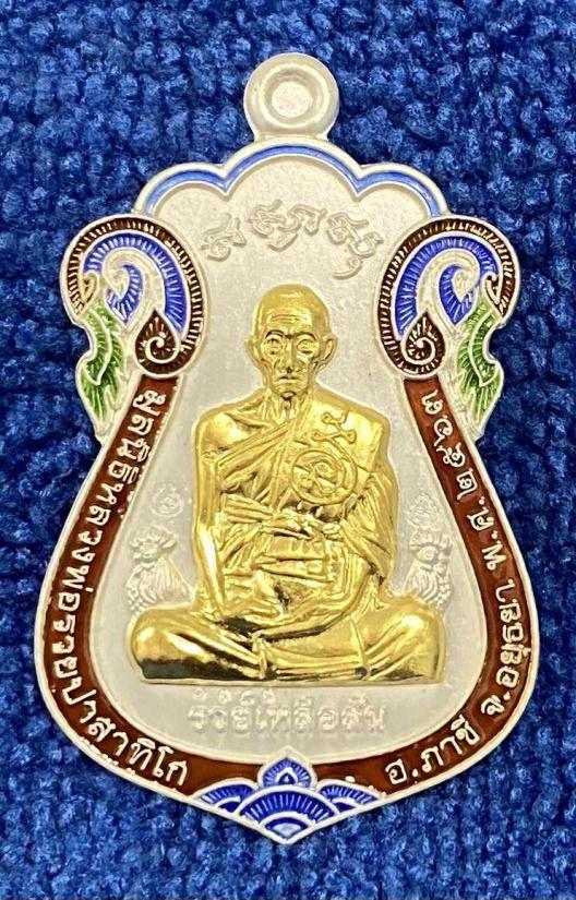 เหรียญหลวงพ่อรวย วัดตะโก รุ่น รวยเหลือล้น ปี 2563 เนื้อเงินลงยาหน้าทองคำ แยกชุดกรรมการ เหรียญสวยมาก จมูกโด่ง ไม่มีกล่อง