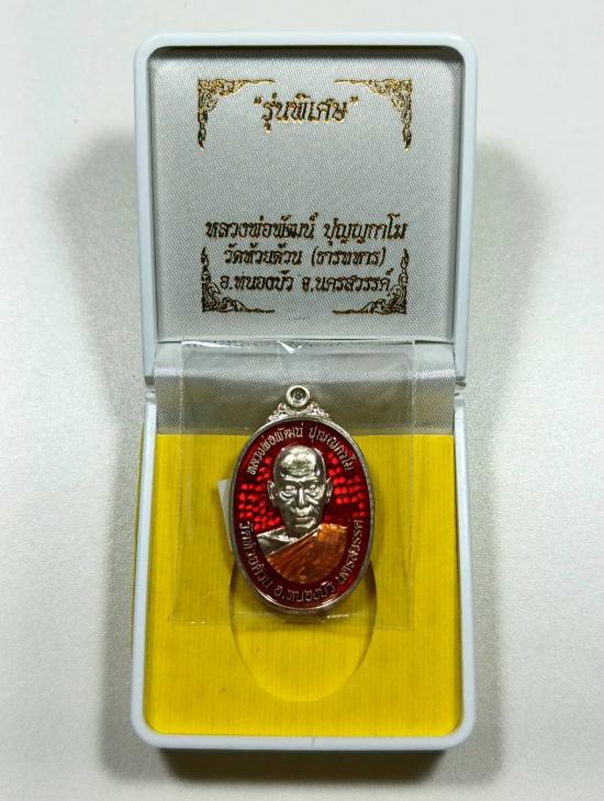 เหรียญรุ่นพิเศษ เนื้อเงินลงยาแดง หมายเลข ๑๙๖ สร้างปี2563 หลวงพ่อพัฒน์ วัดห้วยด้วน พร้อมกล่องเดิมจากวัด ถอดพิมพ์มาจากเหรียญหลวงพ่อคูณ ปี2517