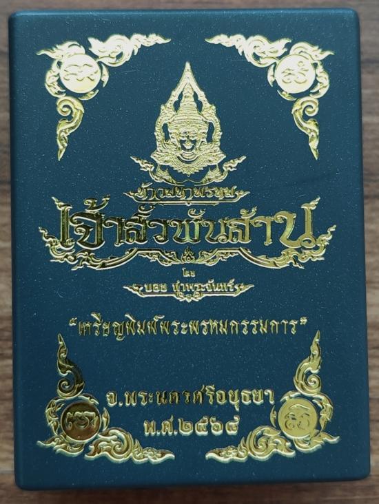 เหรียญท้าวมหาพรหม รุ่นเจ้าสัวพันล้าน(บอย ท่าพระจันทร์) เนื้อสัตตโลหะ ลงยาพื้นน้ำเงินขอบแดง พิมพ์กรรมการ ขอบลายกนก เลขโค๊ต ๓๗๘ พร้อมกล่องเดิม |