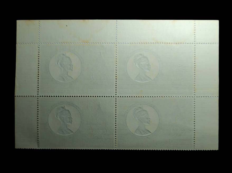 แสตมป์ทอง จำนวน 4 ดวง มูลค่ารวม 400 บาท ที่ระลึกเฉลิมพระเกียรติพระราชชนนีพันปีหลวงพระชนมพรรษา 60 พรรษา มหามงคลเฉลิมพระชนมพรรษาครบ 5 รอบ สมเด็จพระนางเจ้า พระบรมราชินีนาถ ปี พ.ศ.2535 สภาพ UNC. ไม่ผ่านการใช้ |