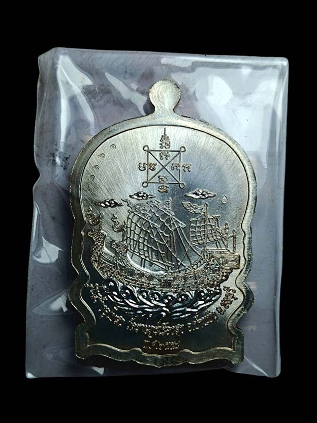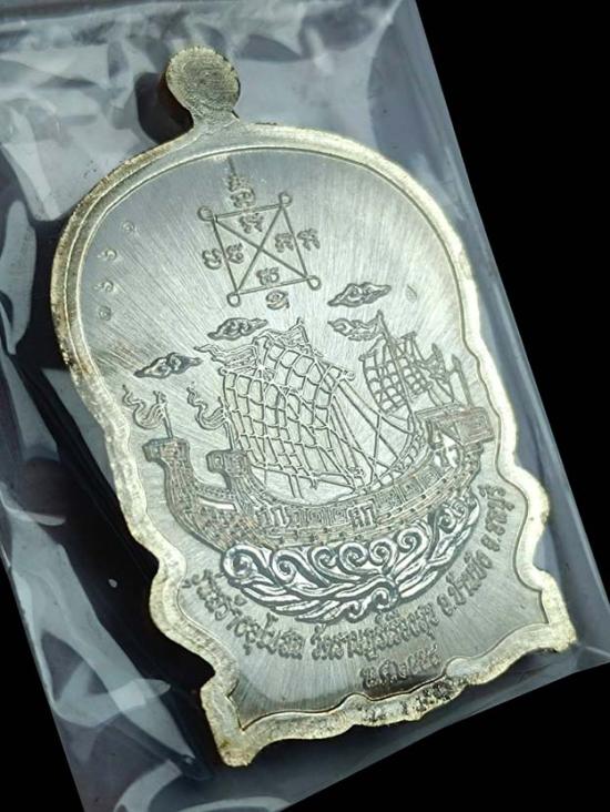 เหรียญนั่งพานสำเภาทอง หลวงปู่ฮก วัดราษฏร์เรืองสุข จ.ชลบุรี ปี 2558 เนื้ออาบเงินลงยาสี ตอกโค้ต หมายเลข 1661 ซีลเดิม พร้อมกล่อง ผิวสวยๆ |