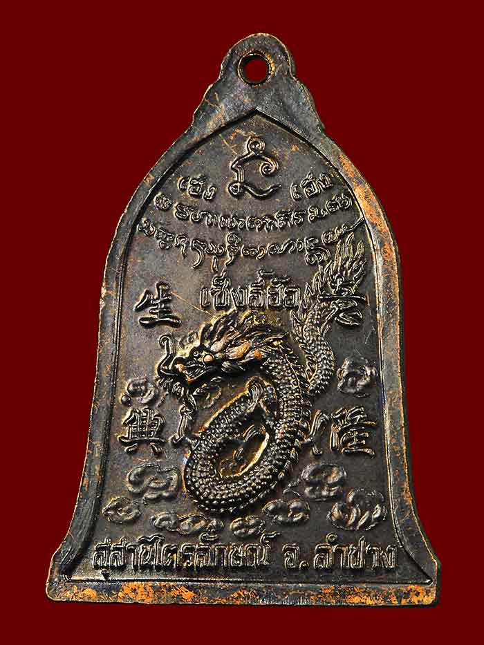 วัดใจ เหรียญระฆัง รุ่นเซ็งลี้ฮ้อ (หลังมังกร) ปี2536 หลวงพ่อเกษม เขมโก องค์ที่1