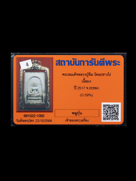 จ. - 27 ต.ค. 2568 - 20:47:06 น. (ถึงราคาขั้นต่ำแล้ว) |