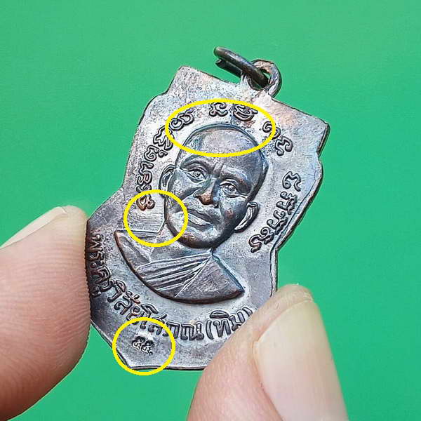 #3 สวยผิวเดิมรุ้งๆ บล็อกเขยื้อน เส้นข้างคอ ห้าห้าจุด เหรียญเสมาใหญ่ ปลุกเสกประจำปี 2555 พิมพ์เสมาหน้าเลื่อนหลังเลื่อน บล็อกเขยื้อน เหรียญนี้มีเส้นรางคู่ ข้างๆ คอพระอาจารย์ทิม บล็อกเขยื้อนคมชัดสวยเดิม |