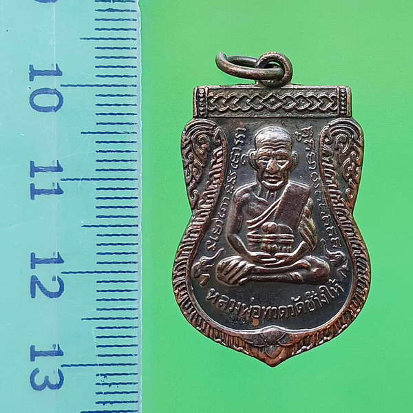 เหรียญเสมาใหญ่ ปลุกเสกประจำปี 2555 พิมพ์เสมาหน้าเลื่อนหลังเลื่อน หลวงพ่อทวดหลังอาจารย์ทิม เนื้อทองแดงรมดำ พร้อมซองเดิมใบคาถา จากวัด