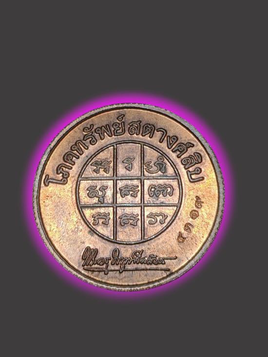A2480.เหรียญสตางค์โภคทรัพย์ปี54 หลวงพ่อแถม วัดช้างแทงกระจาด เพชรบุรี เนื้อทองแดงขอบสตางค์ 1โค๊ด หมายเลข4319 สภาพสวย เคาะเดียวเเดง