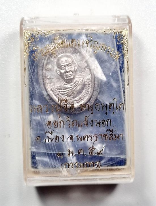 เหรียญเม็ดแตงเจริญพรบน รุ่นแรก ลป.จื่อ เนื้อเงินไม่ตัดปีก9รอบหลังเรียบ หมายเลข67 |