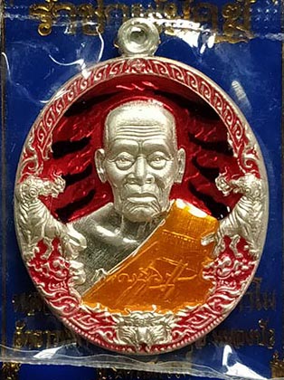 เหรียญหลวงพ่อพัฒน์ วัดห้วยด้วน "รุ่นราชาพยัคฆ์ปี" 2563 เนื้อเงินลายเสือ ลงยาแดง ลงยาจีวร เลขสวย |