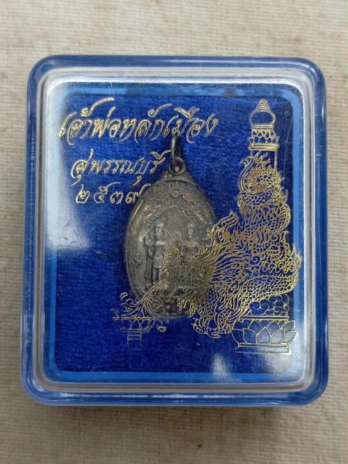 เหรียญเจ้าพ่อหลักเมือง จ.สุพรรบุรี ปี ๒๕๓๙ ( เนื้อเงิน ) พร้อมกล่องเดิมๆ ,เคาะแดงแรก,