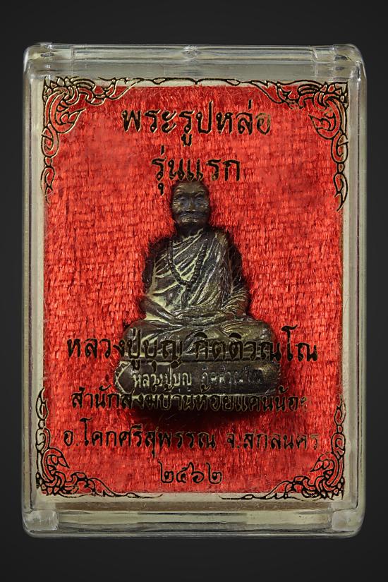 รูปหล่อรุ่นแรก หลวงปู่บุญ กิตติวัณโณ อายุ 103 ปี 75 พรรษา สำนักสงฆ์ห้วยแคนน้อย จังหวัดสกลนคร ปี 2562 ก้นโค๊ดตอกเลข ๑๒๔๙ พร้อมกล่องเดิม (( แดงวัดใจ 120 )) No.2
