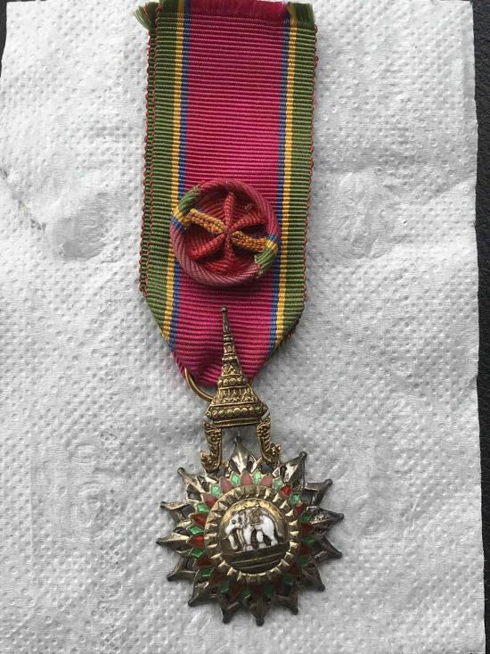 เหรียญเครื่องราช ช้างเผือก เนื้อเงินลงยา พร้อมแพรแถบ