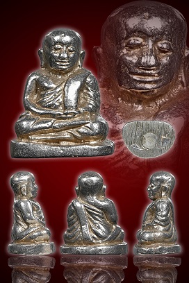 รูปหล่อหลวงพ่อเงิน รุ่นช้างคู่ พิมพ์ใหญ่ เนื้อเงิน ปี 2526 พร้อมบัตรรับรอง G |