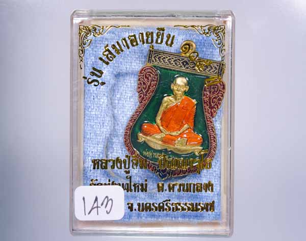 *เหรียญเสมาอายุยืน115ปี หลวงปู่อิ่ม วัดทุ่งนาใหม่ ด้านหน้า พ่อท่ายคล้าย วาจาสิทธิ์ หลังหลวงปู่อิ่ม เนื้อทองทิพย์ลงยา |