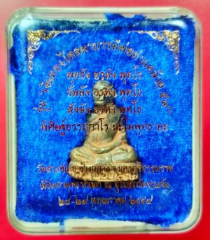 พ่อท่านคล้าย เนื้อนวะโลหะหล่อดินไทย รูปหล่อโบราณ (พิมพ์ก้นอุ) เงินทองไหลมา บารมีพ่อท่านคล้าย 59 สร้าง 1500 องค์ หมายเลข ๓๙๙ พร้อมกล่องเดิม