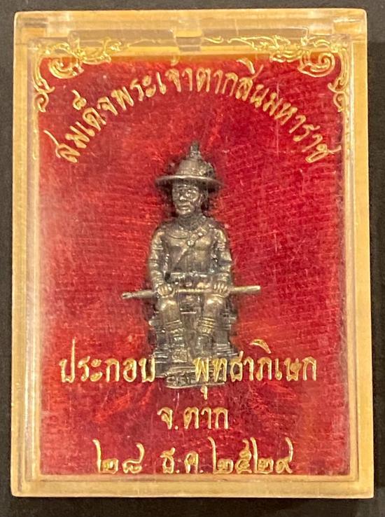 รูปหล่อลอยองค์ สมเด็จพระเจ้าตากสิน เนื้อเงินแท้ พิธีใหญ่ หายาก ปี 2529 จังหวัดตาก ครับ |