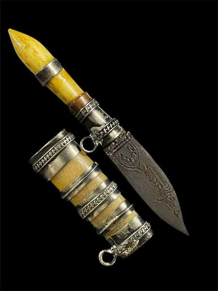 มีดหมอสาริกาไม่ทราบที่ด้ามเป็นกระดูกปลอกก็เป็นกระดูก ดูเก่ามีอายุ |