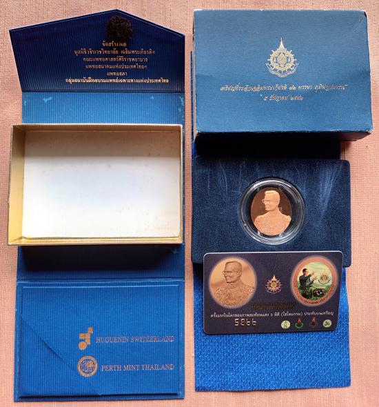 เหรียญในหลวงร.9 ฮูกานิน สวิต ที่ระลึกเฉลิมพระเกียรติ 72 พรรษา ปี2542 (((เนื้อทองแดง ขัดเงา หลัง 3มิติ โฮโลแกรม))) สภาพสวย กล่อง+การ์ดครบ