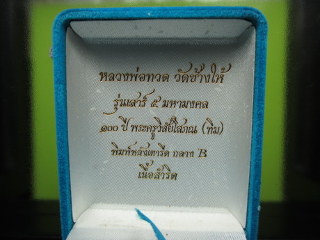 หลวงปู่ทวด วัดช้างไห้ รุ่นเสาร์5 มหามงคล 100 ปี พระครูวิสัยโสภณ(ทิม)พืมพ์หลังเตารีดกลาง B เนื้อสำริด หมายเลข 4356 |