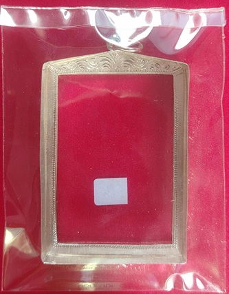 กรอบเงินแท้ สำหรับรูปถ่าย 58 หลวงพ่อกวย งานแกะมือ