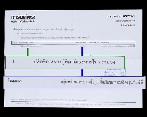 หากพระรายการไหนเกิน 5,000 บาท แล้วลูกค้าประสงค์ไม่ออกบัตร