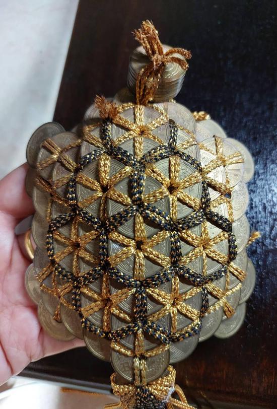 เหรียญ 5 เยน ของเก่า ทำเป็นเครื่องรางนำโชค รูปเต่า ขนาด 4.5 x 5.5 นิ้ว |