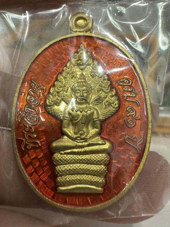 เหรียญนาคปรก รุ่นมหาลาภ91 ปี2557 เนื้อฝาบาตร ลงยาสีส้ม มีกล่อง จำนวน 10 เหรียญ
