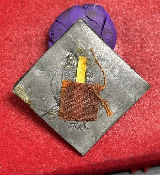 ฉากสีทองแผ่นหลังตะกั่ว ฝังตะกรุดทองคำ 96.5%