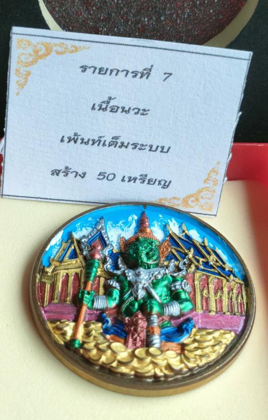 เหรียญท้าวเวสสุวรรณ รุ่นโชคดี หลวงปู่ฝั้น ปสาโท วัดศรีถมอรัตนฺ(วัดหน้าผา)เพชรบูรณ์ เนื้อนวะโลหะ เพ้นท์เต็มระบบ หลังคาถาบูชาท้าวเวสสุวรรณ (สร้าง50เหรียญ) หมายเลข ๕๐ พร้อมกล่อง เลขสุดท้ายของเนื้อนี้ |