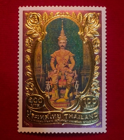 สแตมป์ทอง ราคาหน้าดวง 100 บาท รุ่นครบ 150 ปี แห่งวันบรมราชสมภพ ร.5 ปี 2546
