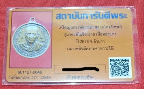 เหรียญกองพันเชียงรายปี18 หลวงพ่อเกษม เขมโก พร้อมบัตรรับรองจากเว็บครับ.