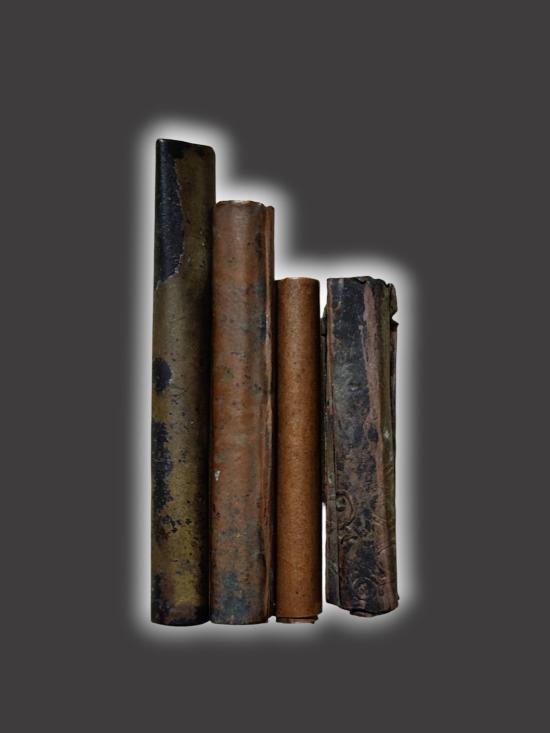 A2538.**วัดใจ** ชุดเซ็ต ตะกรุดทองเเดงเก่า 4 ดอก ไม่ทราบที่ เคาะเดียวเเดง