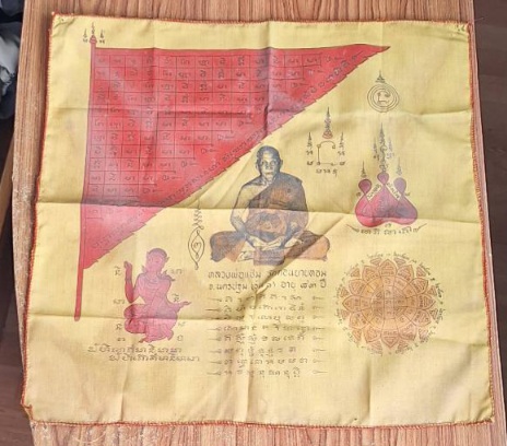 สภาพผ้ายันต์พอสวยเก่าตามอายุผ่านการใช่บูชามานาน