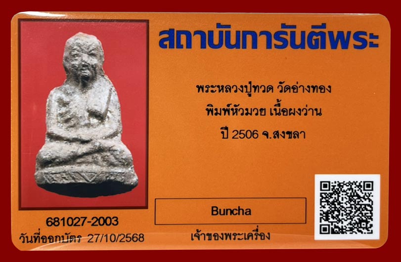 !!!...หลวงปู่ทวด วัดช้างให้ พิมพ์หัวมวย นิยมฐานบัวฟันปลา ออกวัดอ่างทอง จ.สงขลา รุ่นแรก เนื้อผงว่าน ปี2506 สร้างน้อย หายาก พร้อมบัตรรับรองครับ...!!! |