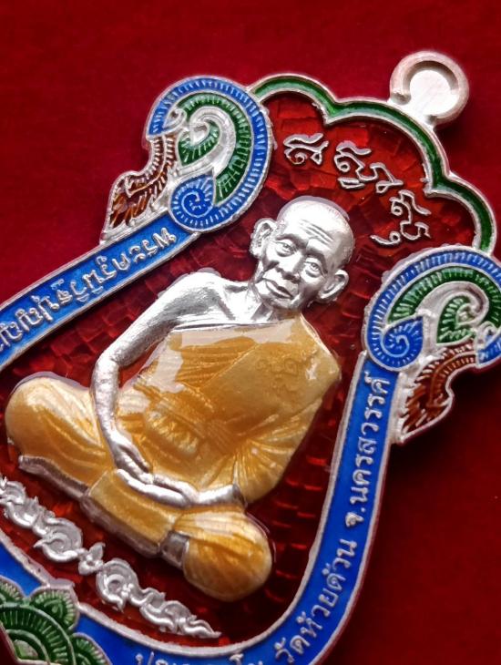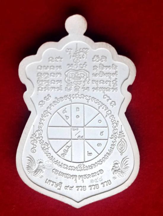 เหรียญเสมาดวงเศรษฐี๙๙ รวย รวย รวย เนื้อเงินลงยาราชาวดีพื้นแดง หมายเลข ๑๔๘ สร้างปี 2563 หลวงพ่อพัฒน์ วัดห้วยด้วน สวยแชมป์