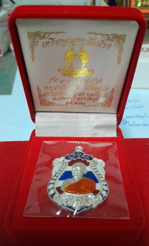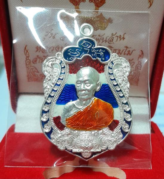 เหรียญเสมาหันข้าง รุ่น 5 พยัคฆ์พันล้าน หลวงปู่บุญมา "เนื้อเงิน ลงยาธงชาติ" เลขสวย 22 จำนวนการสร้าง 39 องค์ (หนัก 24.74 กรัม) |