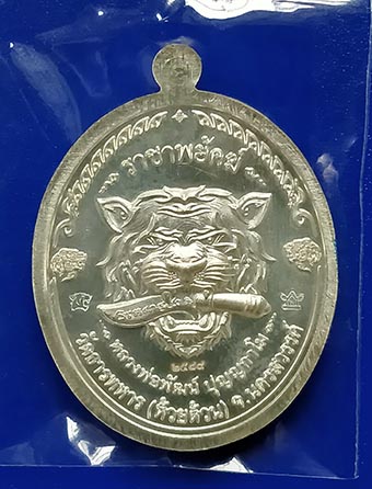 เหรียญหลวงพ่อพัฒน์ วัดห้วยด้วน "รุ่นราชาพยัคฆ์ปี" 2563 เนื้อเงินลายเสือ ลงยาน้ำเงิน ลงยาจีวร เลขสวย