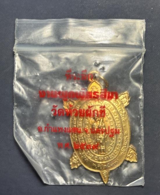 เคาะเดียวแดง เต่า พระสีวลีมหาลาภ หลวงปู่หลิว วัดไร่แตงทอง นครปฐม ออกที่วัดห้วยผักชี ปี2537 เนื้อทองแดงกะไหล่ทอง ซองเดิมวัด องค์ที่ 2