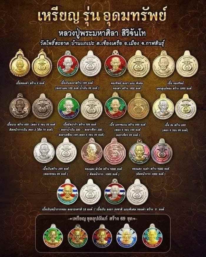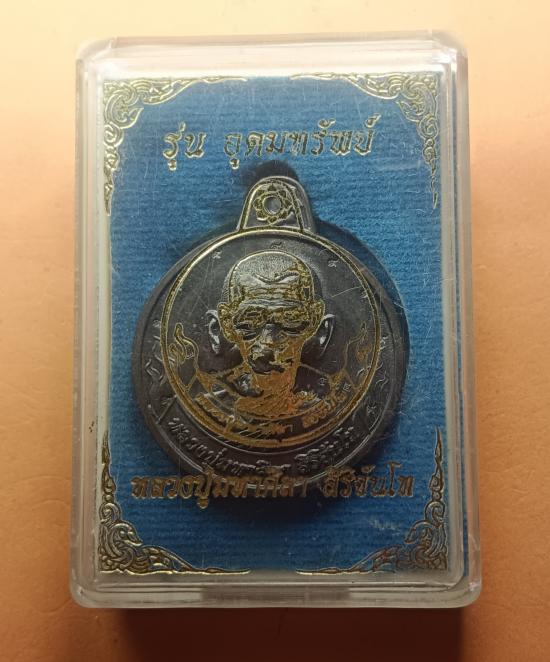 เหรียญอุดมทรัพย์ ยุคต้น ปี2564 หลวงปู่มหาศิลา สิริจันโท วัดโพธิ์ศรีสะอาด สวนสงฆ์แกเปะ จ.กาฬสินธุ์ เนื้อนวะโลหะ ตอก๒โค๊ด ตอก ๙ รอบ เลข ๔๘๒ หลวงปู่เมตตาจารให้หน้าหลัง มีกล่องเดิม นวะสร้าง ๔๙๙ องค์ ตอก ๙ รอบ สร้าง ๙๙ องค์
