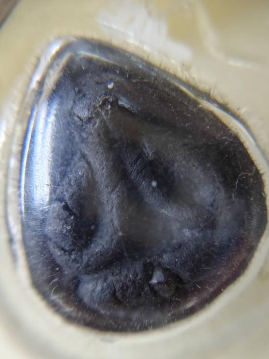 A2627.วัดใจ พระปิดตาจิ๋ว เนื้อดำ ไม่ทราบที่ เลี่ยมพร้อมใช้ เคาะเดียวเเดง |
