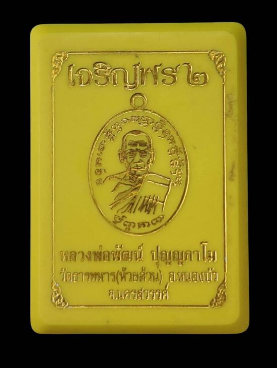 เหรียญเจริญพร2 พิมพ์ครึ่งองค์ เนื้อเงินลงยาส้ม หมายเลข ๔๒๘๑ หลวงพ่อพัฒน์ ปุญญกาโม วัดห้วยด้วน พร้อมกล่องเดิมๆจากวัด