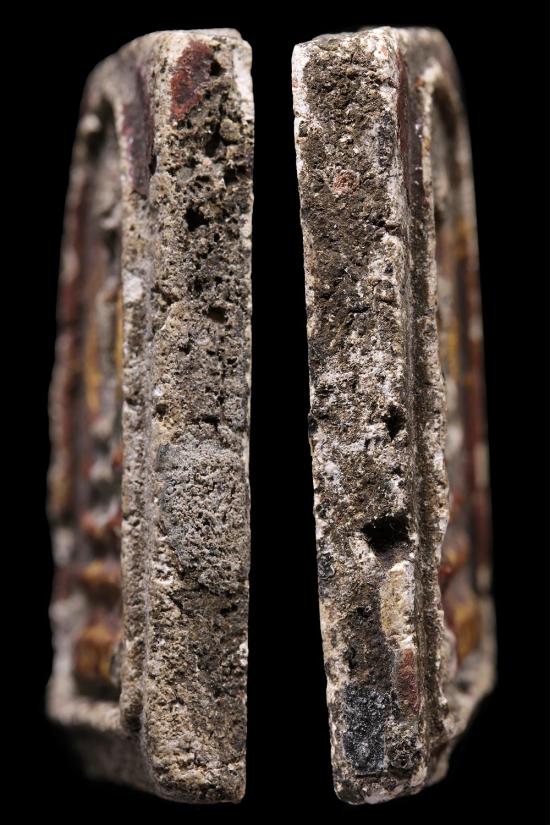 พระสมเด็จเนื้อผงเก่า มีคราบลงรักเก่าประปรายไม่ทราบที่ |