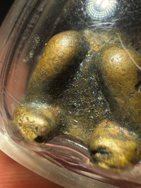 วัดใจ เคาะเดียวพระปิดตาเนื้อทองผสมพร้อมเลี่ยมทรงดอกบัวเก่าพระบ้านไม่ทราบที่เหมามา |