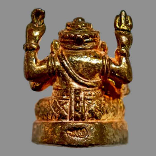 พระพิฆเนศหลวงพ่อคูณ รุ่นมั่งมีศรีสุข เนื้อทองแดง ปี2539 ตอกโค้ดด้านหลัง
