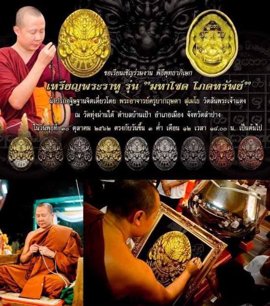 เหรียญพระราหู มหาโชคโภคทรัพย์ พิมพ์ใหญ่ ปี 62 ออกที่วัดทุ่งม่านใต้ ท่านครูบากฤษดาปลุกเสกเดี่ยว เลขสวย 326 |