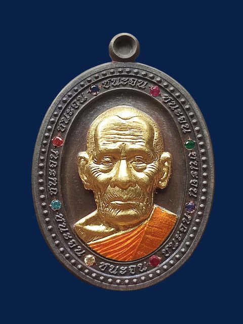 เหรียญชนะจนชุดเพิ่มบุญ หลวงปู่สมาน เนื้อนวะหน้ากากทองคำสวยใหญ่
