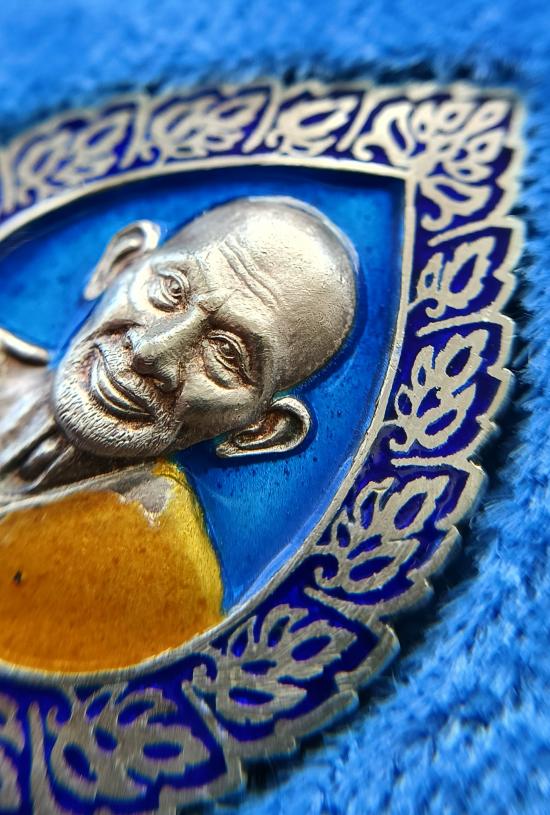 "เคาะแรกแดง"เหรียญหลวงปู่ศุข ปี 2537 เนื้อเงินลงยาสีฟ้า |