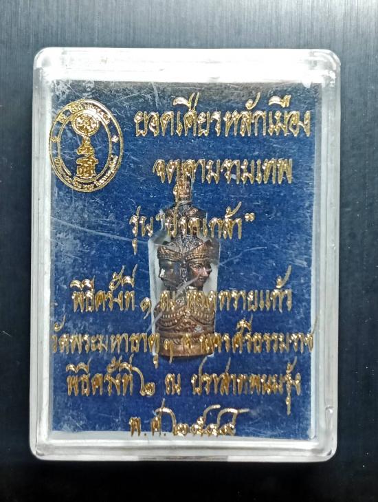 ชื่อพระเครื่อง ยอดเศียรหลักเมือง จตุคามรามเทพ รุ่นปรกเกล้า ปี 2549 หลวงปู่หงษ์ หลวงปู่ธรรมรังษี หลวงปู่ผาด หลวงตาคีย์ ร่วมปลุกเสก พิมพ์เล็ก ตอกโค้ต