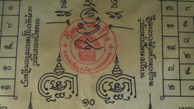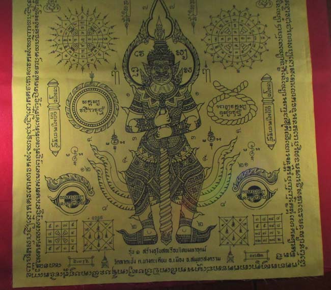 ผ้ายันต์ ท้าวเวสสุวรรณ รุ่น ๑ สร้างอุโบสถเรือนไทยมหาอุตม์ วัดลาดเป้ง ต.นางตะเคียน อ.เมือง จ.สมุทรสงคราม ผืนที่ 2 ครับ (สีดำ ครับ) |